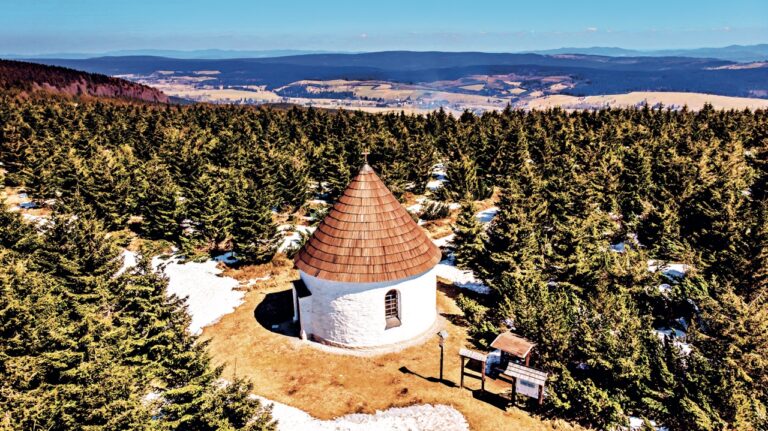 Objektem, který vás doslova ohromí, je Kunštátská kaple nedaleko Zdobnice v Orlických horách. Jedinečná je nejen svým vzezřením s kruhovým půdorysem a zářivě bílou omítkou, ale i polohou.