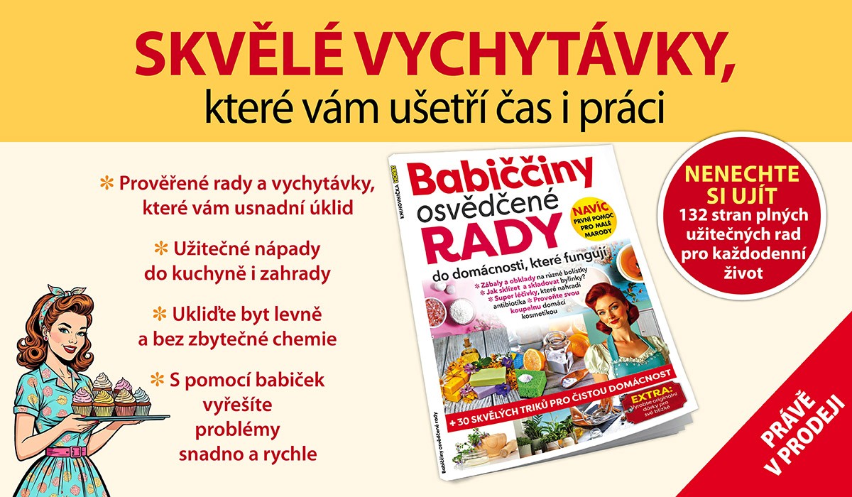 Jak vyčistit oblečení, jak uklidit a zvelebit celý byt? Jak si vyrobit originální domácí dekorace? Každá správná hospodyňka přeci totiž touží po voňavé a čisté domácnosti. Ne každá toho ale umí docílit. A pokud mezi tyto ženy patříte, tak právě vám přinášíme ty nejúčinnější a rychlé rady, které využívaly už naše babičky, aby byla jejich domácnost bez poskvrnky. Poradíme vám, jak problémy v domácnosti vyřešit levně a efektivně a zpravidla bez použití moderních chemických přípravků, které zbytečně zatěžují přírodu.