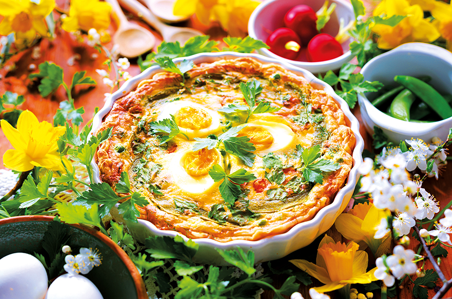 Koláč podávejte ozdobený čerstvými bylinkami.