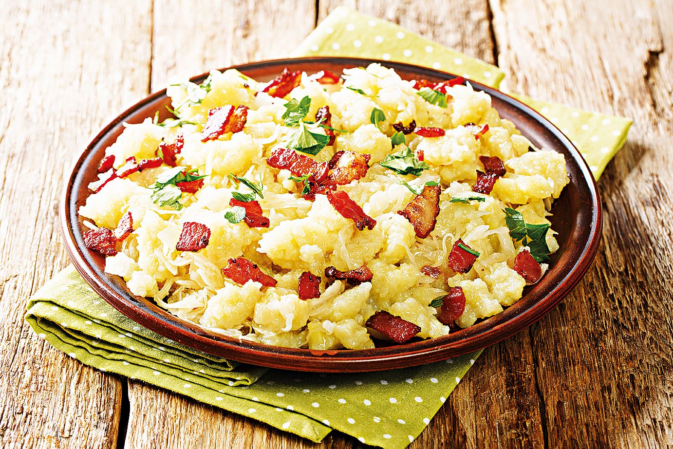 3. Noky sceďte nebo vyjměte děrovanou naběračkou a nechte okapat. Můžete je ihned podávat nebo krátce osmahnout na másle. Doplňte podle libosti opečenou slaninou, kysaným zelím, rozdrobenou bryndzou apod.