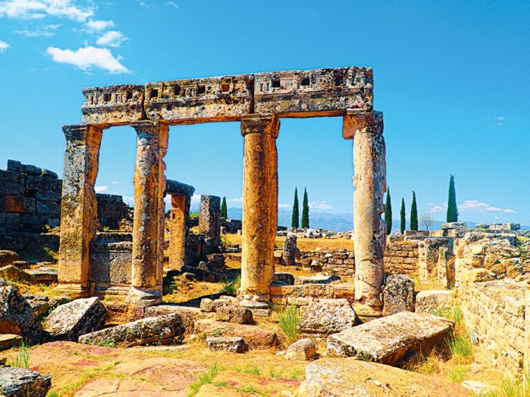 Jde o svah pokrytý sněhově bílým travertinem, připomínající bavlněný hrad, jsou zde kaskády malých bazénků s minerální vodou a zájemci si můžou prohlédnout bývalé antické lázeňské město Hierapolis.