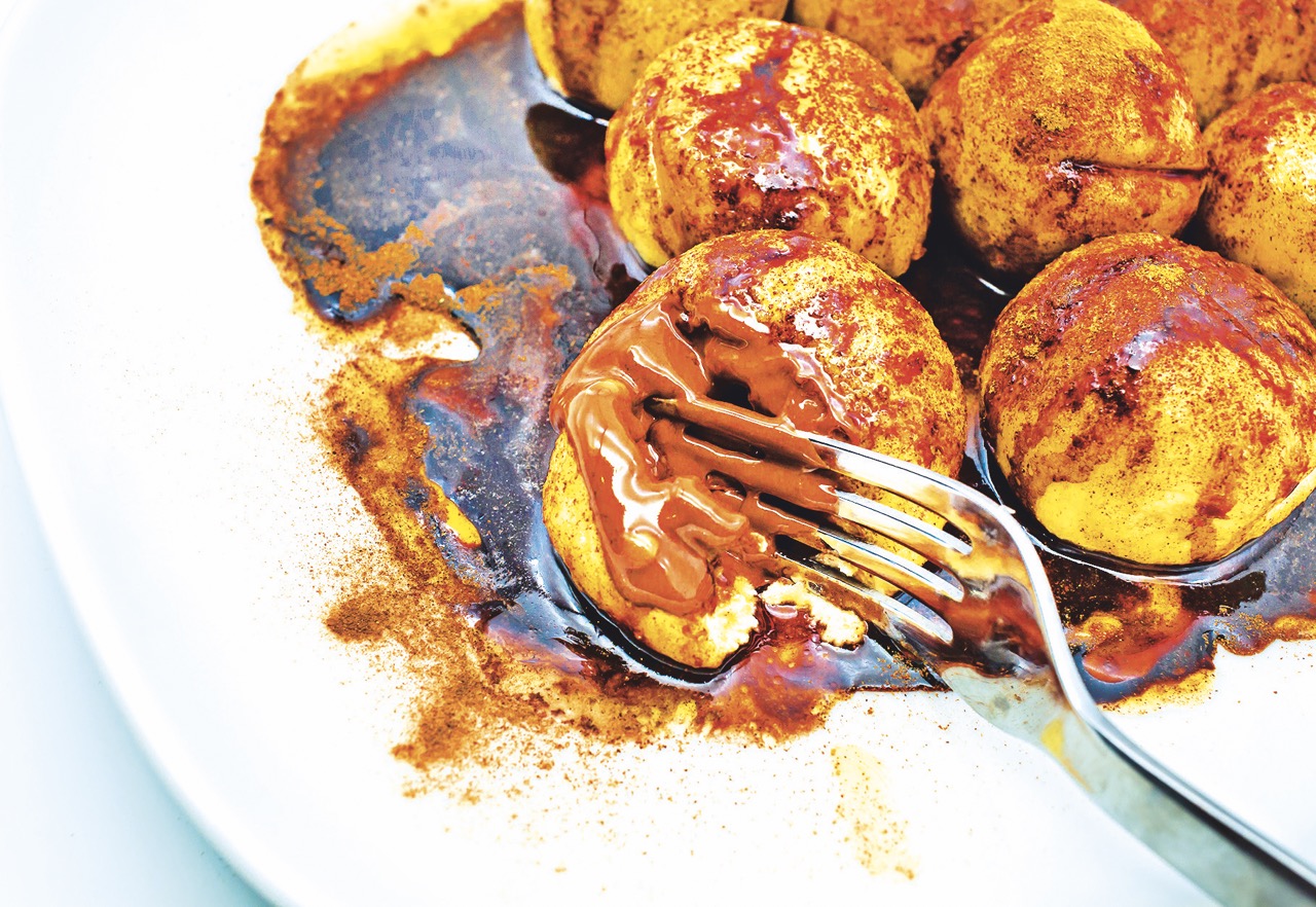 Teplý dezert s překvapením uvnitř kombinuje jemnost tvarohového těsta s čokoládovou náplní.