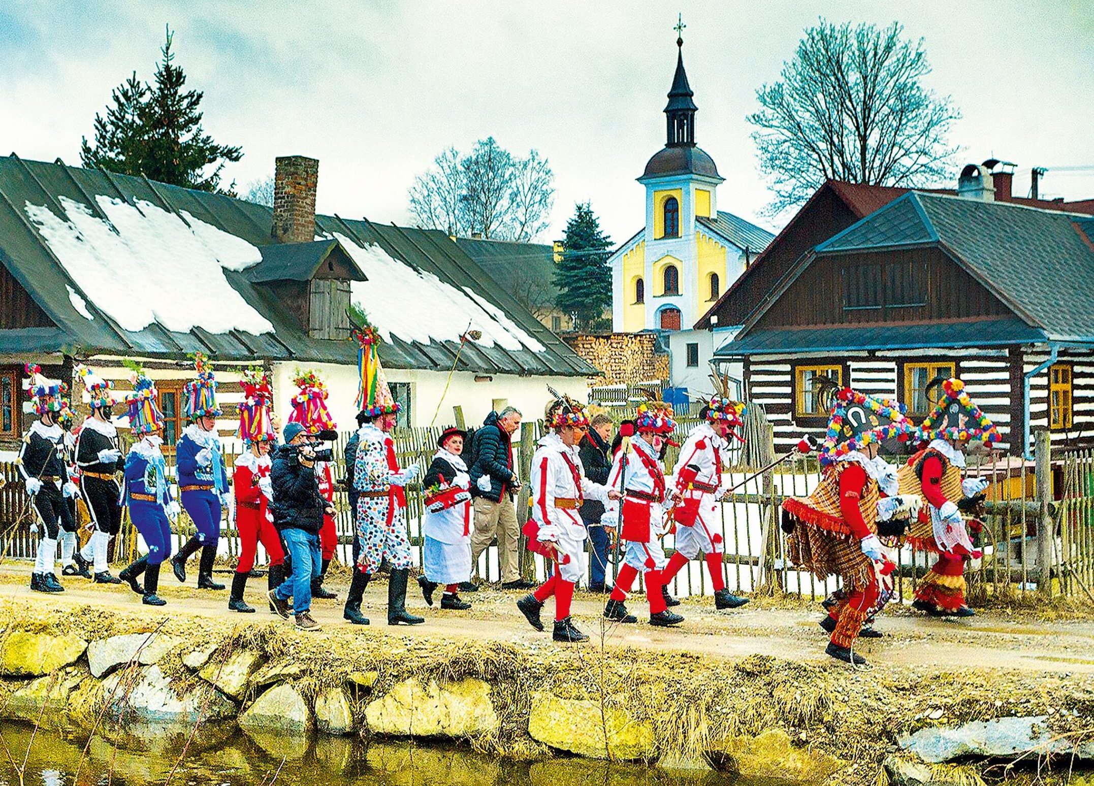 Po nich jdou kominíci, pak slamění, ras s kobylkou, bába s dědkem v nůši, medvědář s medvědem a Židi. Tradice se zde dodržují přísně.