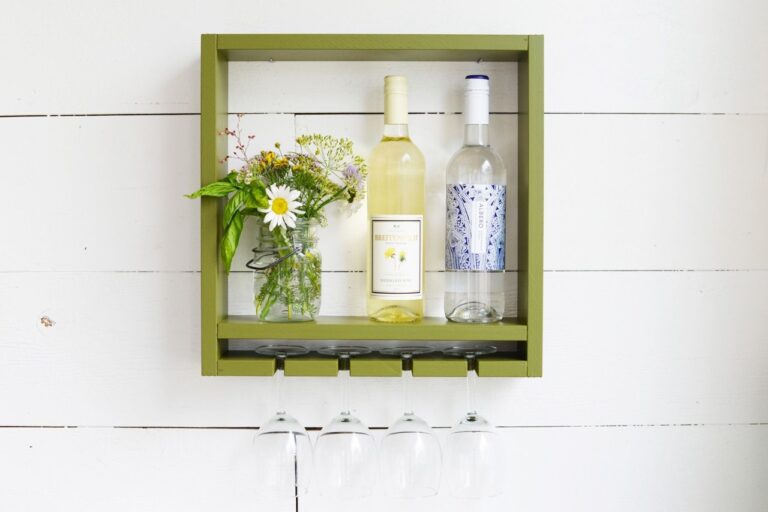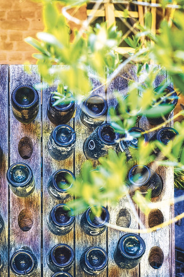 Vtipným způsobem, jak vyřešit praktický stojan na vína, je přibít k sobě pár silnějších prken a vyvrtat do nich otvory. Ty by měly odpovídat velikosti hrdla lahve a směřovat šikmo dolů. Poté osaďte lahvemi.