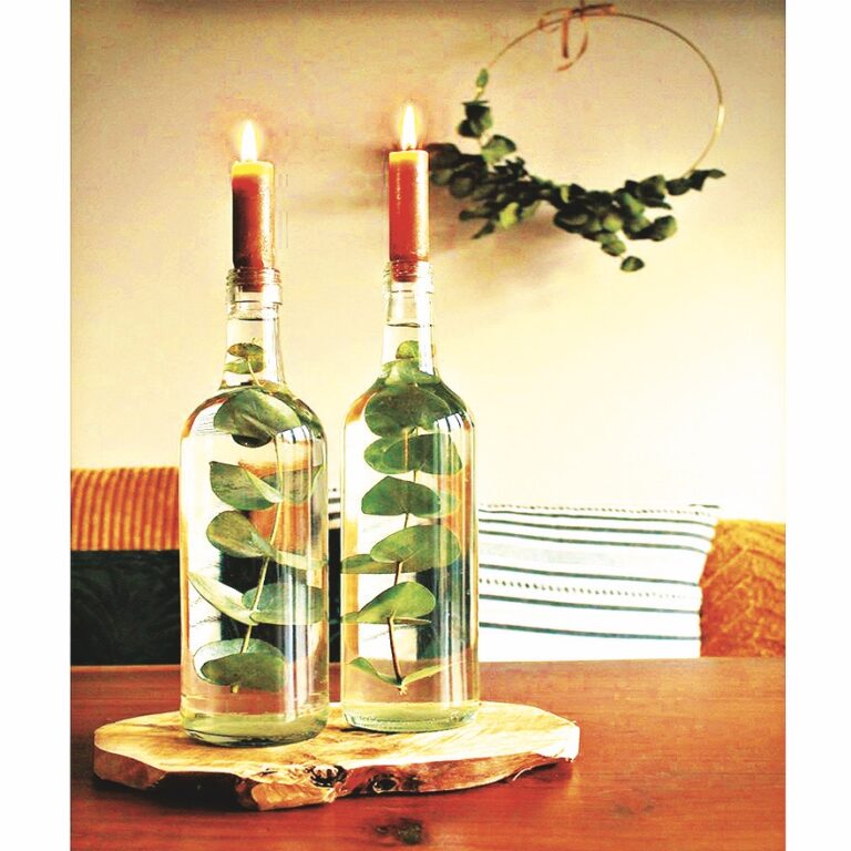 Lahev od vína nemusí jít rovnou do tříděného odpadu. Ještě může skvěle posloužit jako zajímavý svícen. Důkladně odstraňte z lahve etikety, do vnitřku nasuňte živou květinu dle vašeho výběru, zalejte vodou a do hrdla vsuňte svíčku.