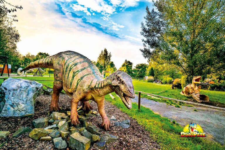 Najdete tu desítky modelů dinosaurů v životní velikosti, tam a zpět vás navíc zdarma převeze vláček DinoExpres. A aby se návštěvníci bavili, čeká je tu i robotické mládě dinosaura.