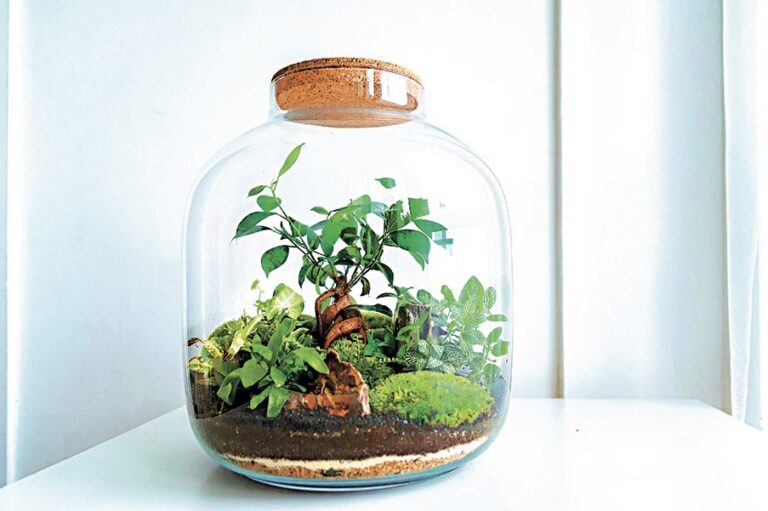 Co takhle miniaturní botanická zahrádka vytvořená ze širšího průhledného barelu? Dno pokryjte pískem, na něj navrstvěte hlínu a vsaďte drobnou rostlinu. Obložte mechem nebo kůrou. Výsledek přímo okouzlí.