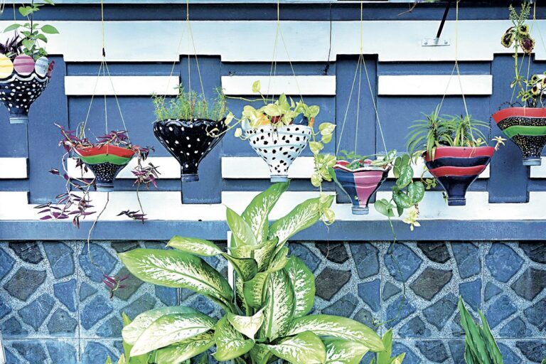 Schovat si plastové dvoulitrovky se vyplatí. Ustřihněte hrdla tak, aby pojmula dostatečné množství hlíny, do víčka provrtejte dírku, připevněte provázky, a máte parádní závěsné venkovní květníky.