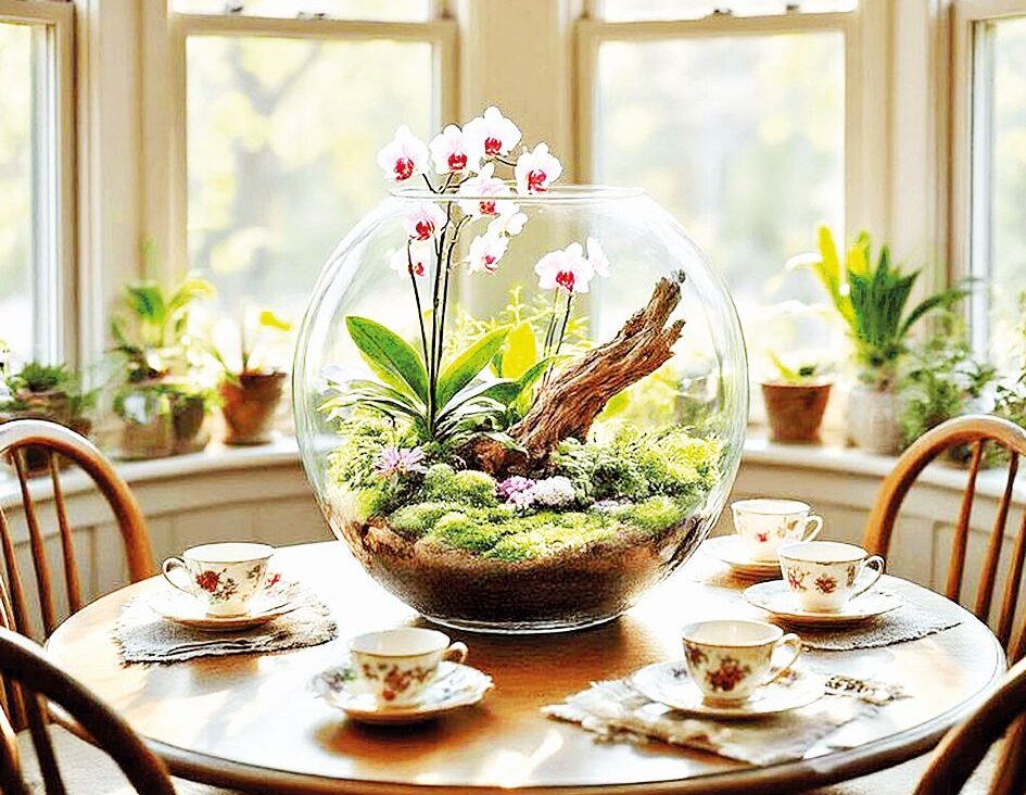 Ve floráriu můžete pěstovat i orchideje, ale bude to chtít trošku péče. Nebo je můžete podobně pěstovat ve skleněné míse, doplněné mechem a sukulenty. Tato kombinace vypadá naprosto skvěle!