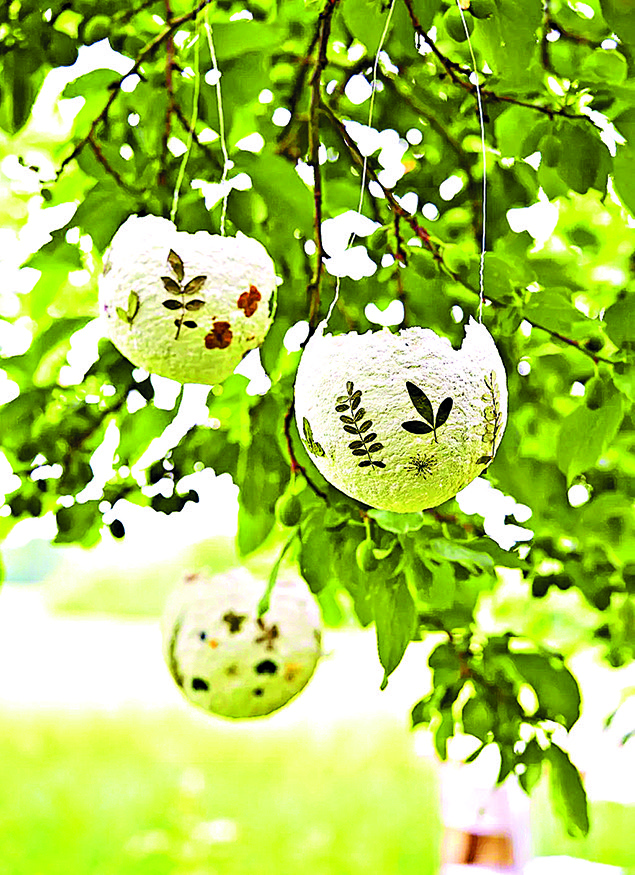 Vyrobit můžete také tyto půvabné skořápky, které budou krásnou dekorací třeba na Velikonoce. Zaschlý povrch polepte vylisovanými sušenými kvítky nebo lístky.