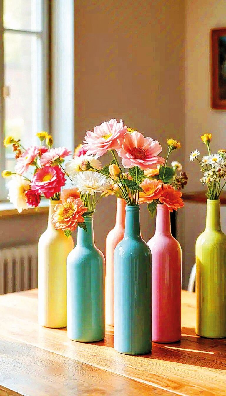 Věděla jste, že lahev od vína nebo piva může skvěle posloužit jako váza na řezané květiny? Vyrobíte ji za pár minut, ale radost vám bude dělat celý rok. Povrch skleněné lahve omyjte horkou vodou a případně odstraňte zbytky lepidla a etikety.
